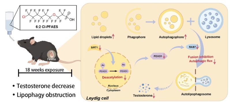 近期,公共卫生学院仇梁林老师课题组在环境与健康领域国际著名学术期刊《Environmental Science & Technology》(环境科学与技术)杂志上在线发表题为“6:2 Chlorinated Polyfluoroalkyl Ether Sulfonate (6:2 Cl-PFAES), a PFOS Alternative, Impairs Testosterone Synthesis in Leydig Cells by Targeting Lipophagy via the SIRT1−FOXO1−RAB7 Axis: An In Vitroand In VivoStudy