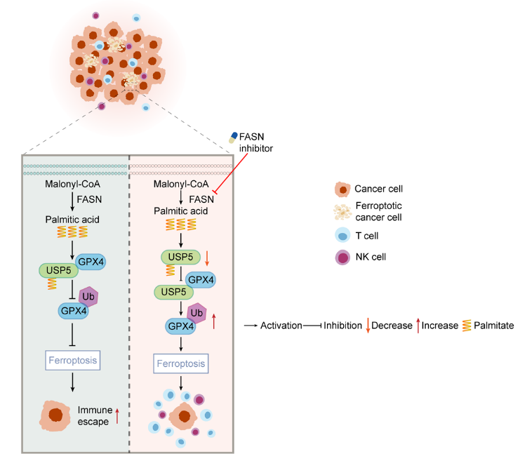 近日,我院环境与健康研究团队(南通市环境毒理学重点实验室)赵新元教授团队与无锡市妇幼保健院张岩教授团队合作在国际知名学术期刊《Journal of Experimental & Clinical Cancer Research》(IF: 12.8, 中科院医学大类一区)上发表了题为《FASN inhibits ferroptosis in breast cancer via USP5 palmitoylation-dependent regulation of GPX4 deubiquitination》的学术论文。这项研究深入探讨了脂肪酸代谢酶脂肪酸合酶(FASN)在乳腺癌发病中的调控机制及