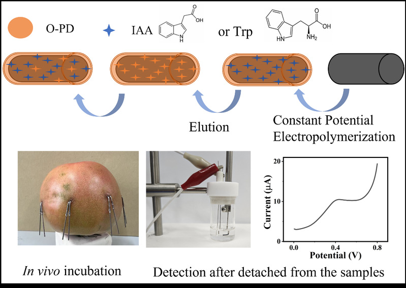 近日,我院营养食品卫生系鲍宁教授和卫生检验与检疫学系霍晓磊教授在生物传感器国际顶尖期刊《Biosensors &Bioelectronics》(中科院一区Top期刊,影响因子10.5)上在线发表了题为“Constant potential prepared molecularly imprinted electrochemical sensors for in vivo analysis of electroactive indole-3-acetic acid in tomato fruits”的研究成果。该研究创新性的基于恒电位法制备了分子印迹电化学传感器,可用于植物组织内生长素(IAA)