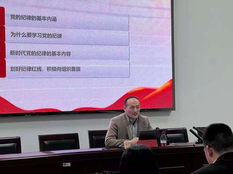 刘飞以《划好纪律红线积极向组织靠拢》为题,从党的纪律的基本内涵,为什么要学习党的纪律,新时代党的纪律的基本内容三个方面出发,结合丰富的实际案例,为同学们详细解读了党的政治纪律、组织纪律、廉洁纪律、群众纪律、工作纪律、生活纪律,并勉励同学们自觉用党规党纪校正思想行为,始终做到忠诚干净担当。