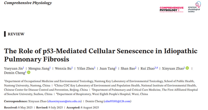 相关成果以“The role of p53-mediated cellular senescence in idiopathic pulmonary fibrosis”为题,发表在《Comprehensive Physiology》(IF: 5.2, 中科院生理学一区)上。