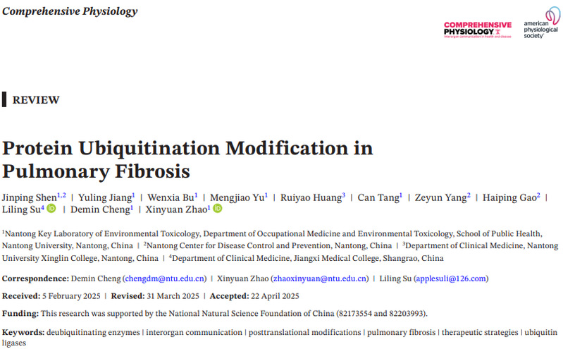 相关成果以“Protein Ubiquitination Modification in Pulmonary Fibrosis”为题,发表在《Comprehensive Physiology》(IF: 5.2, 中科院生理学一区)上。