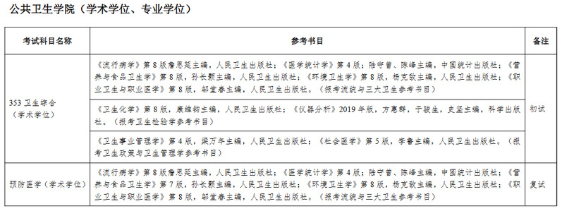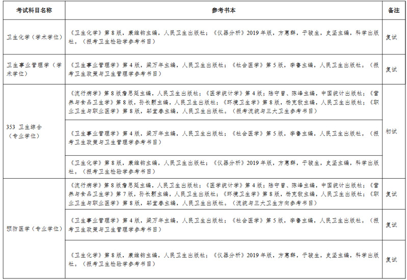 2026 年公共卫生学院硕士研究生自命题考试科目参考书目