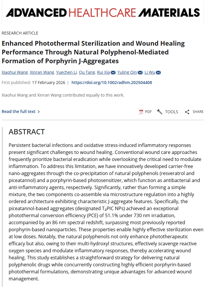 祝贺夏锐老师文章被Advanced Healthcare Materials接收!